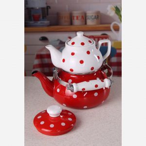کتری و قوری لعابی توپی طرح ترک هوم کینگ HOME KING (خارجی درجه 1 )