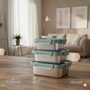 ظرف نگهدارنده غذا استیل 3 تکه یونیک درب شفاف 1409