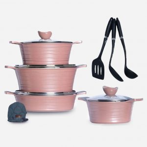 سرویس قابلمه 11 پارچه کلاسیک گرانیتی صورتی یونیک 7708