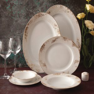 - سرویس غذاخوری چینی لبه طلا: این نوع سرویس غذاخوری چینی دارای لبههای طلایی هستند و ظاهری لوکس و مجلل دارند.