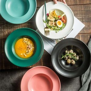 - ظروف سرامیکی: این ظروف به دلیل تنوع رنگ و طرح، زیبایی و مقاومت بالا، از محبوبترین انواع ظروف تک غذاخوری هستند. سرامیکهای لعابدار علاوه بر زیبایی، تمیز کردن آسانی نیز دارند.