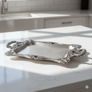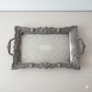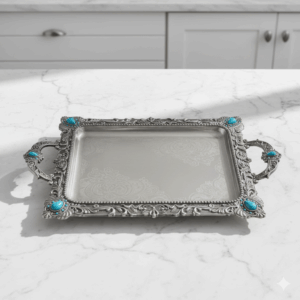 سینی پیوتر بزرگ نگین دار فیروزه یونیک کد 1311 (خارجی ضد زنگ)
