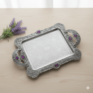 سینی پیوتر متوسط نگین دار بنفش یونیک کد 1447 (خارجی ضد زنگ)