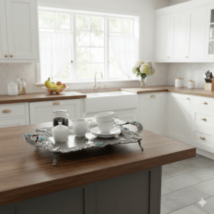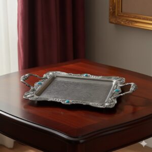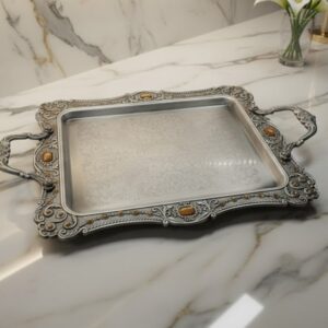 سینی پیوتر نگین دار عسلی یونیک کد 1529 (خارجی ضد زنگ)
