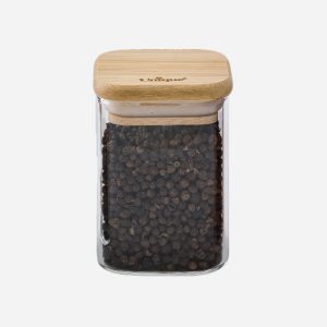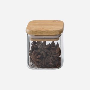 بانکه شیشه ای درب چوبی مربع 20 سانت یونیک کدUN-1760
