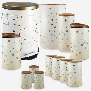 سرویس آشپزخانه 4+8 پارچه فانتزی مدل خالدار سفید یونیک 9017