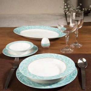 سرویس غذاخوری ایتالیا اف سپید صدف فیروزه 28 پارچه چینی زرین
