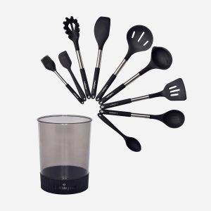 سرویس کفگیر و ملاقه 7پارچه مدل سیلیکونی سطل فلزی نیوهوم کد 1501
