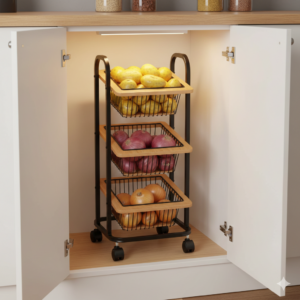 جای سیب زمینی و پیاز 2 طبقه فلز و چوبی تسمه ای نیوهوم