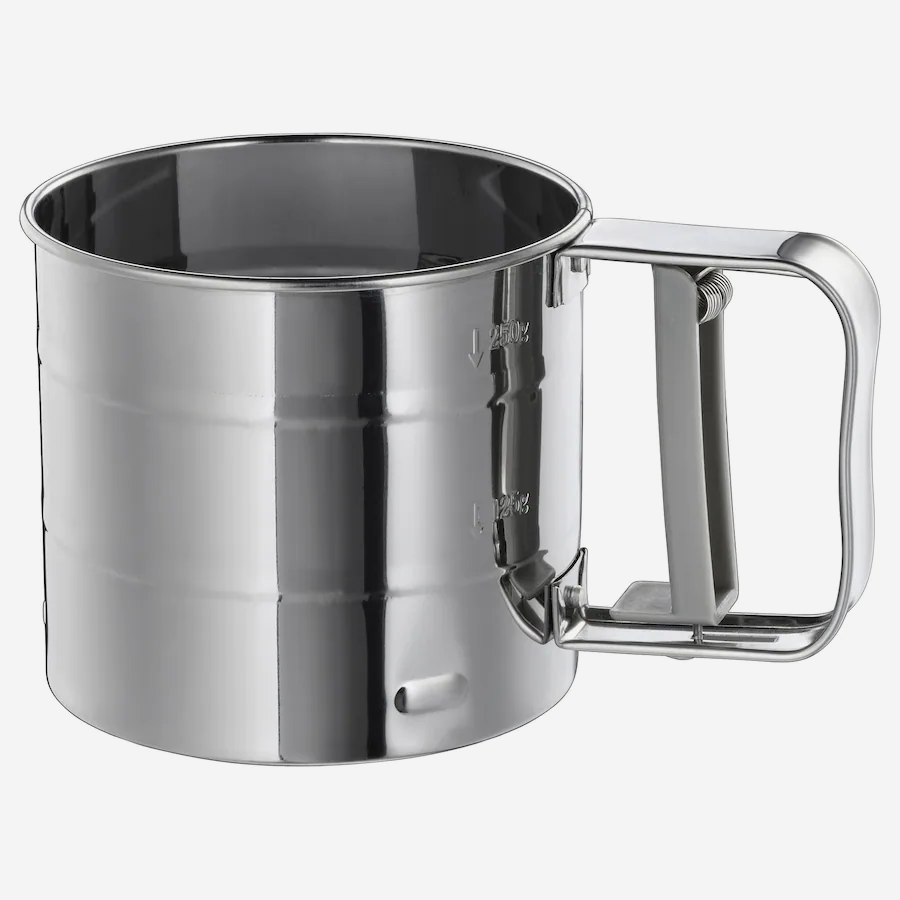 با استفاده از الک دسته دار ایکیا IKEA-IDEALISK میتوانید به راحتی انواع آرد و پودر ها را الک کنید. دسته ی این الک به یک سیستم چرخشی متصل است. با فشردن آن تیغه میچرخد و آرد ها را زیر و رو میکند. پس نیازی به تکاندن الک ندارید.این الک شیرینی پزی بسیار کاربردی برای هر آشپزخانه است.
