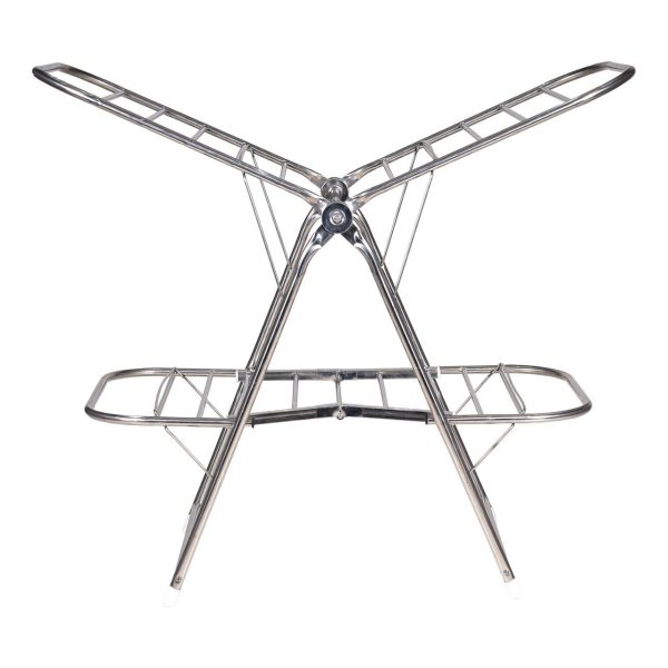 این یک رخت آویز لباس از جنس فولاد ضد زنگ است که برای خشک کردن لباس در داخل یا خارج از خانه مناسب است. بادوام و مستحکم است و برای نگهداری آسان تا می شود. این رخت آویز دارای میله های متعددی برای آویزان کردن لباس است و همچنین مجهز به یک قفسه برای خشک کردن ژاکت یا سایر اقلام ظریف است.