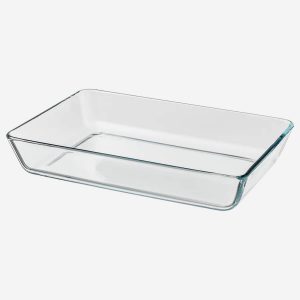 از تابه پیرکس ایکیا IKEA-MIXTUR میتوانید برای پخت و پز، سرو و یا نگهداری مواد غذایی استفاده کنید. جنس این ظرف از شیشه مقاوم در برابر حرارت است. شیشه رنگ و بوی مواد غذایی را به خود جذب نمیکند و به راحتی تمیز میشود.