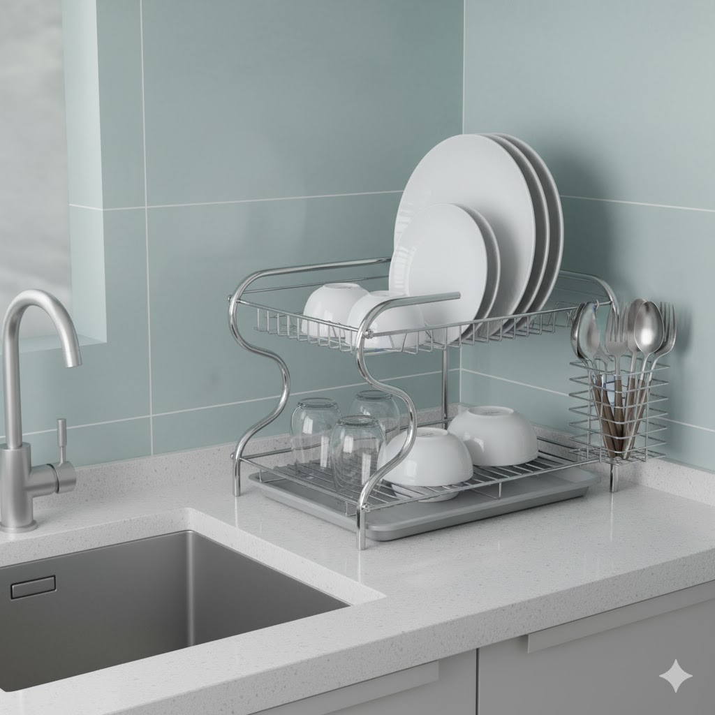 اگر در آشپزخانه جای کافی برای قراردادن ظروف شسته شده ندارید؛ جاظرفی دو طبقه استیل ساینمز sinmaz محصولی مناسب برای آشپزخانه شماست. این آبچکان دارای دو طبقه برای قراردادن ظروف است. جنس این محصول استیل و ضد زنگ زدگی است. قسمت های مختلق این جا ظرفی برای قراردادن بشقاب ها، ایوان و سایر ظروف است.