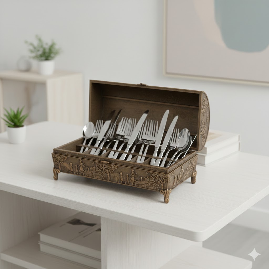 برای کسانی که به زیبایی و دکوراسیون منزل و پذیرایی میهمانان خود اهمیت میدهند و جود یک جعبه کارد و چنگال زیبا بر روی میز پذیرایی آشکار است. “جاکادری آنتیک یونیک کد 1329-2” در طرح های متفاوت و منتاسب با سلیقه شما قابل سفارش است. این محصول از جنس آلیاژ پیوتر ساخته شده و روی آن با از نقوش برجسته تریین شده. زیبایی این طرح ها باعث شده تا این محصولات در طی سال ها زیبایی خود را حفظ کرده و قابل استفاده باشند.