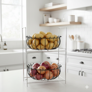 - صرفه جویی در فضا: با استفاده از این محصول، میتوانید سیب زمینی و پیاز را به صورت عمودی و در فضای کمتری نگهداری کنید و از شلوغی کابینتها جلوگیری کنید.