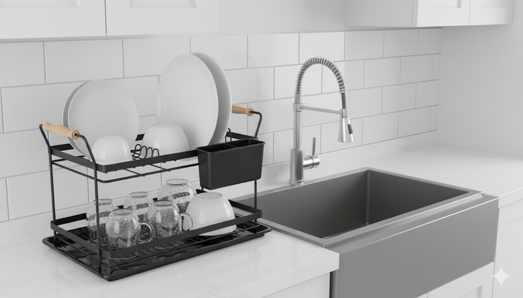 محصول دریافت شد . چرا سینی زیر آبچکان خروجی آب نداره؟ از همه جهات بسته هست و هیچ سطح شیبداری برای خروج آب روی محصول طراحی نشده
