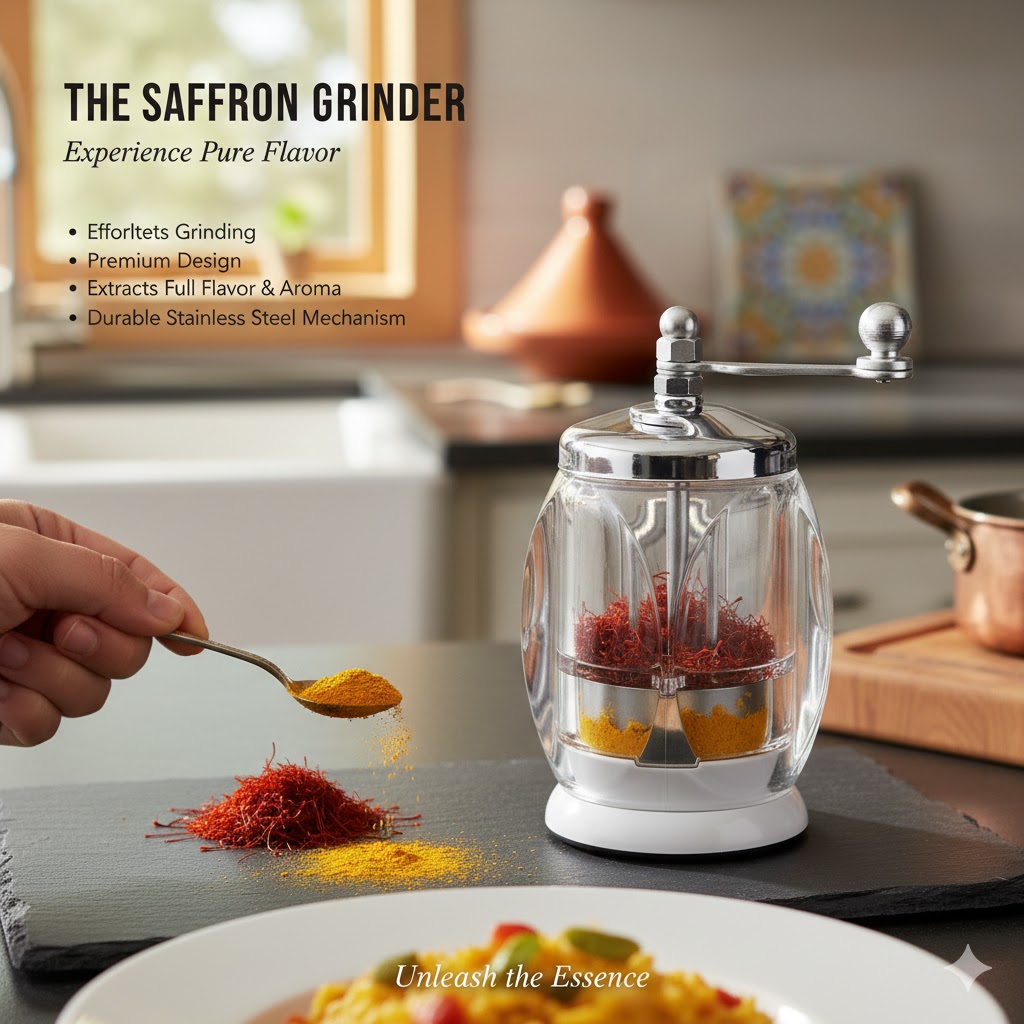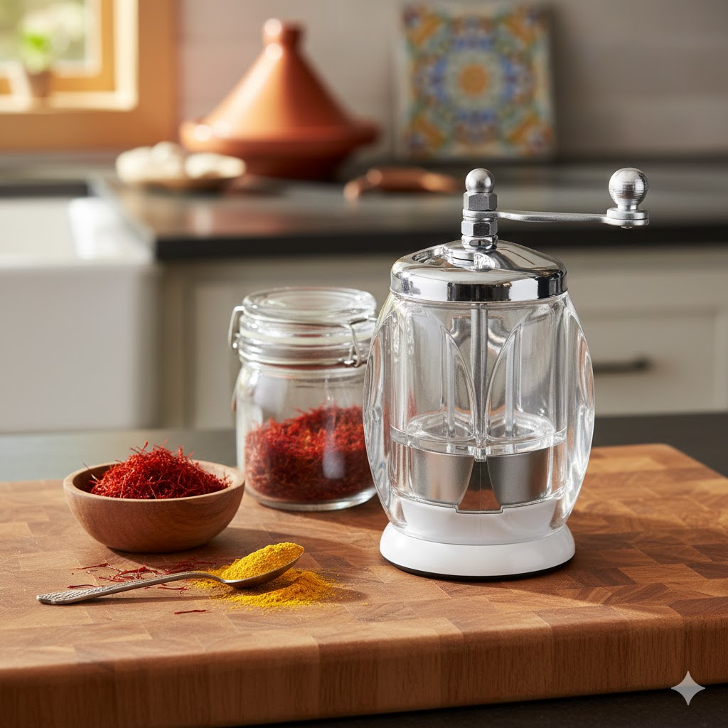 - سپس با استفاده از چرخش دسته، زعفران را بسایید.