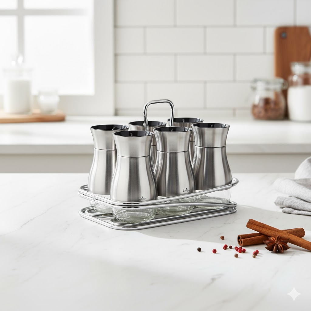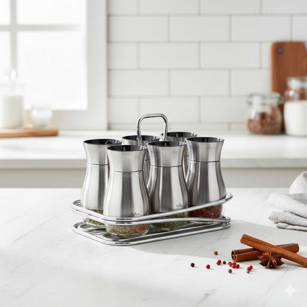 ست ادویه 7 پارچه پایه استیل قطره یونیک کد 1446 (خارجی درجه1)