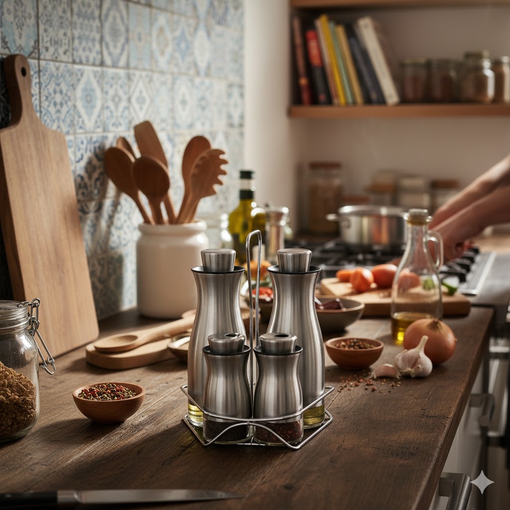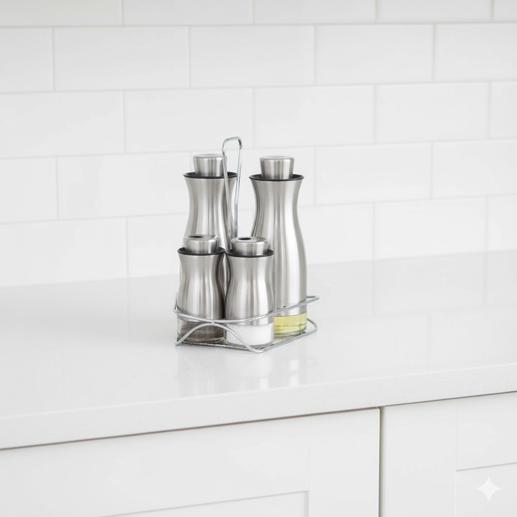“ست سالاد شاپو یونیک کد 2044″ شامل چهار ظرف از جنس شیشه و با پوششی استیل به همراه یک پایه دسته دار برای حمل راحت تر این ظروف است.این ست شامل دو آبلیمو خوری برای نگه داری انواع مایعات مثل آبلیمو، سرکه و آبغوره؛ و دو نمک پاش برای نگه داری انواع چاشنی ها و ادویه جات است. شکل خروجی این ظروف باعث جلوگیری از ریختن بیش از حد مایعات به غذا شده و استفاده از آن ها را راحت تر کرده. به طوری که کافی است برای استفاده از مواد داخل این ظروف درب ظرف را بچرخانید.