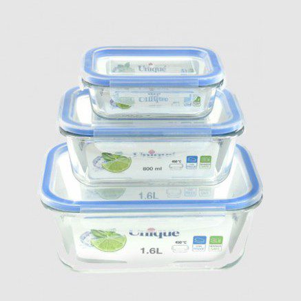 ست ظروف غذا فریزری شیشه ای سه سایز یونیک کد 2811 (خارجی دریجه 1)