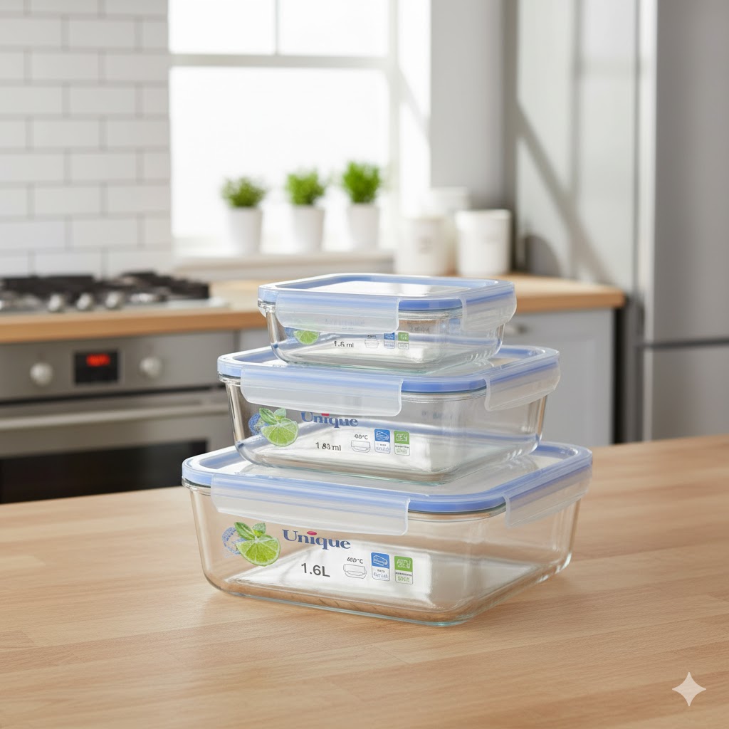 قرار دادن مواد غذایی موجود در فریزر همواره با مشکلاتی از قبیل پاره شدن نایلون ها و کثیف شدن محیط فریزر همراه بوده. همچنین استفاده از ظروف معمولی برای نگه داری مواد غذایی در یخچال یا فریزر باعث خواهد شد محیط یخچال با بوی بد مواد آلوده شود. از این رو وجود ظروف مخصوص نگهداری مواد غذایی در هر خانه ای امری ضروری است. “ست ظرف فریزری شیشه ای سه سایز یونیک کد 2811” سه اندازه متفاوت و از شیشه نشکن ساخته شده. این ظرف ها در 4 طرف دارای قفل هایی است که با بستن آنها جلوی ورود هر گونه آلودگی به داخل مواد درون ظرف گرفته خواهد شد. این ظرف از جنس شیشه نشکن بوده و قابلیت استفاده در ماکروفر و شستشو در ماشین ظرف شویی را داراست.