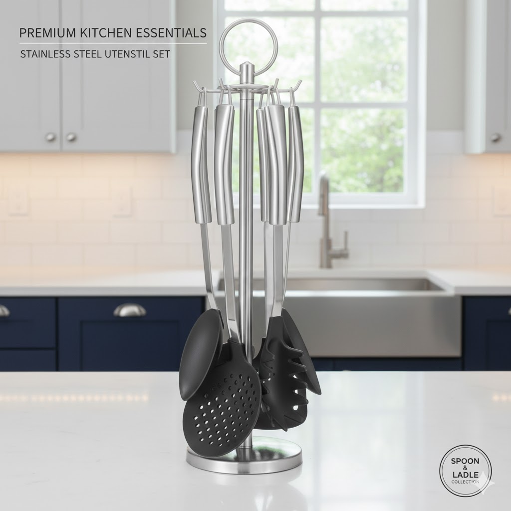 لازمه ی داشتن آشپزخانه ای زیبا و کاربردی انتخاب هوشمندانه وسایل است. هر یک از ابزار های “ست کفگیر و ملاقه استیل یونیک کد 1048” در کنار کاربرد های گسترده در آشپزی روزانه، زیبایی فوق العاده ای دارند. این محصولات از جنس سیلیکون هستند. سیلیکون به دلیل تحمل دمای بالا در برابر حرارت ظروف آشپزی مقاوم است. همچنین دسته آن ها از استیل ضد زنگ براق ساخته شده.تنوع این ست ابزار باعث شده بتوانید تمام نیاز های آشپزی خود را تامین کنید. این ست 7 پارچه شامل 6 عدد ابزار آشپزی زیر است: