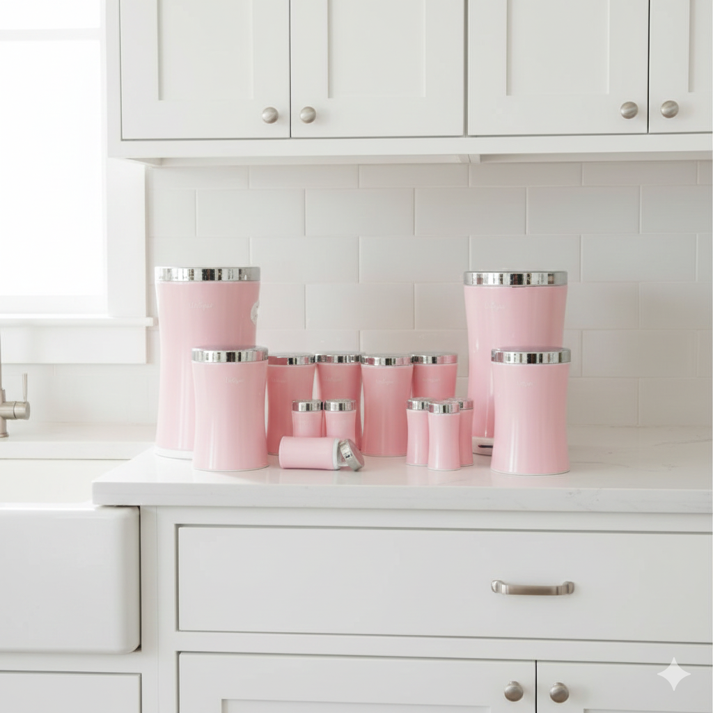 سرویس آشپزخانه 14 پارچه کمر باریک صورتی استیل یونیک 4523