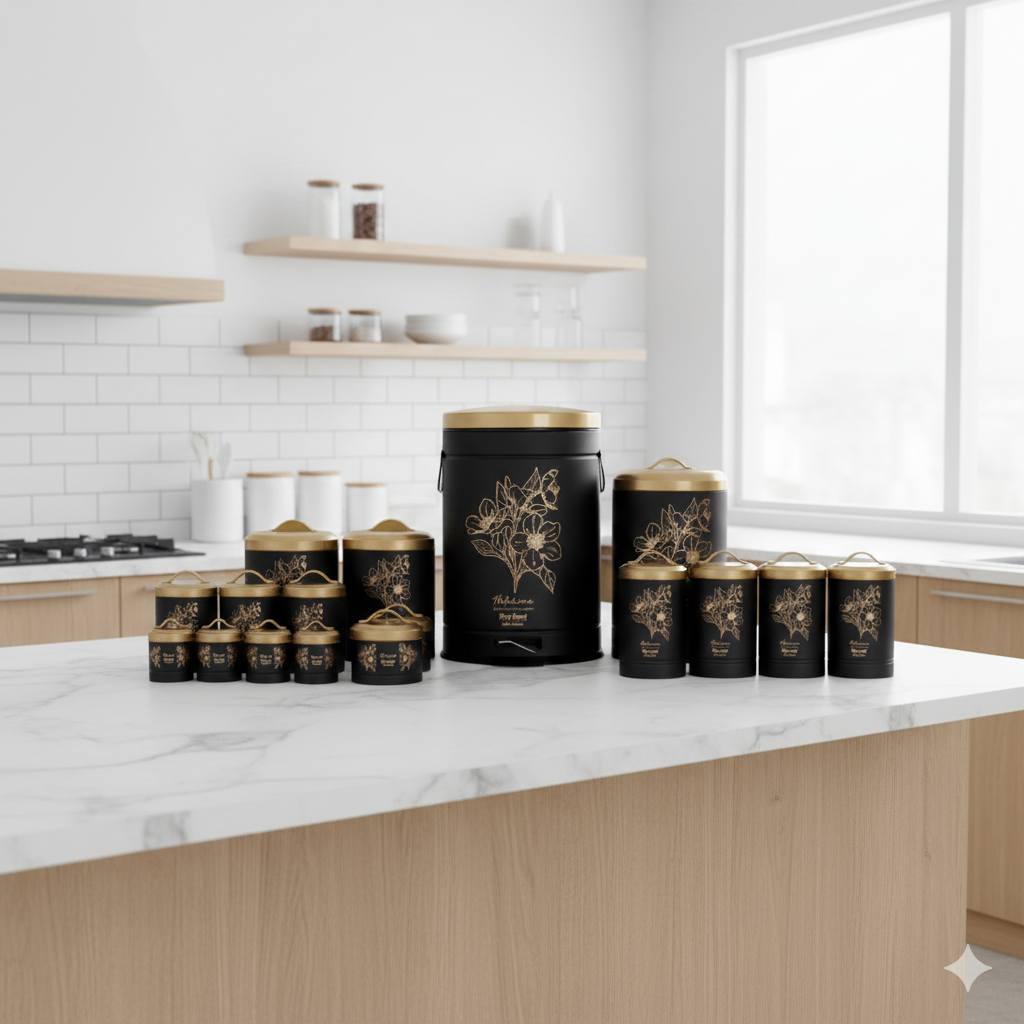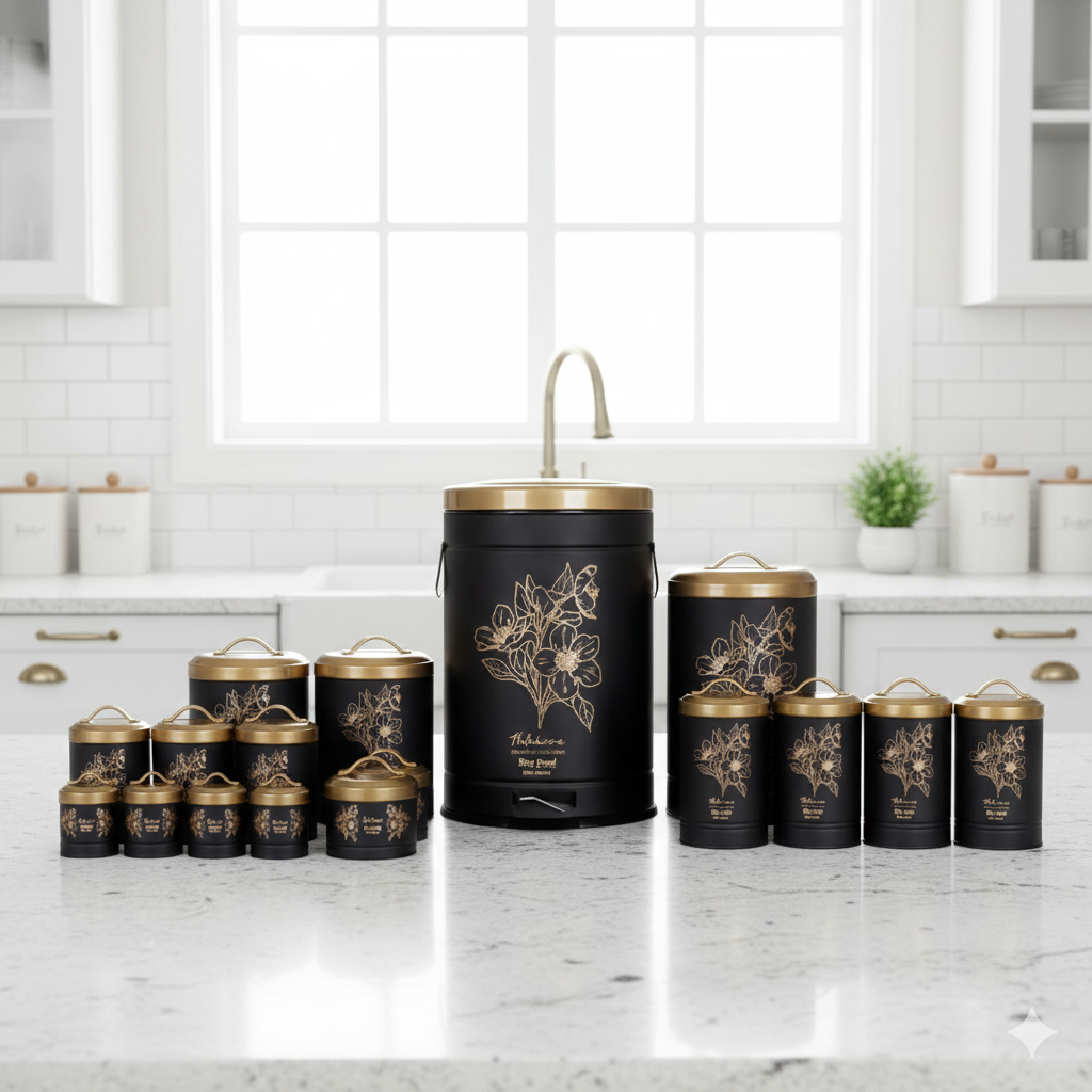 “سرویس آشپزخانه 17 پارچه نیوهوم مدل لوتوس کد NH13-1304B” یک سرویس آشپزخانه کامل برای خانه شماست. شاید انتخاب تک تک بانکه ها و سطل ها کار دشواری باشد و در نهایت ست آشپزخانه شما با هم جور نشود به این خاطر ترکیب بانکه ها و جا ادویه ها در یک پک، کار شما را راحت تر میکند. اما با خرید ست 17 پارچه نیوهوم نیاز بر طرف میشود. این محصول ساخته شده از فلز آبکاری شده با کیفیت است که دارای طرح و رنگبندی متنوع دارد ، همچنین محفظه داخلی بانکه کیفیت خوبی دارند و از بو گرفتن و خراب شدن مواد غذایی جلوگیری میکند. این سرویس شامل اقلام زیر میباشند: