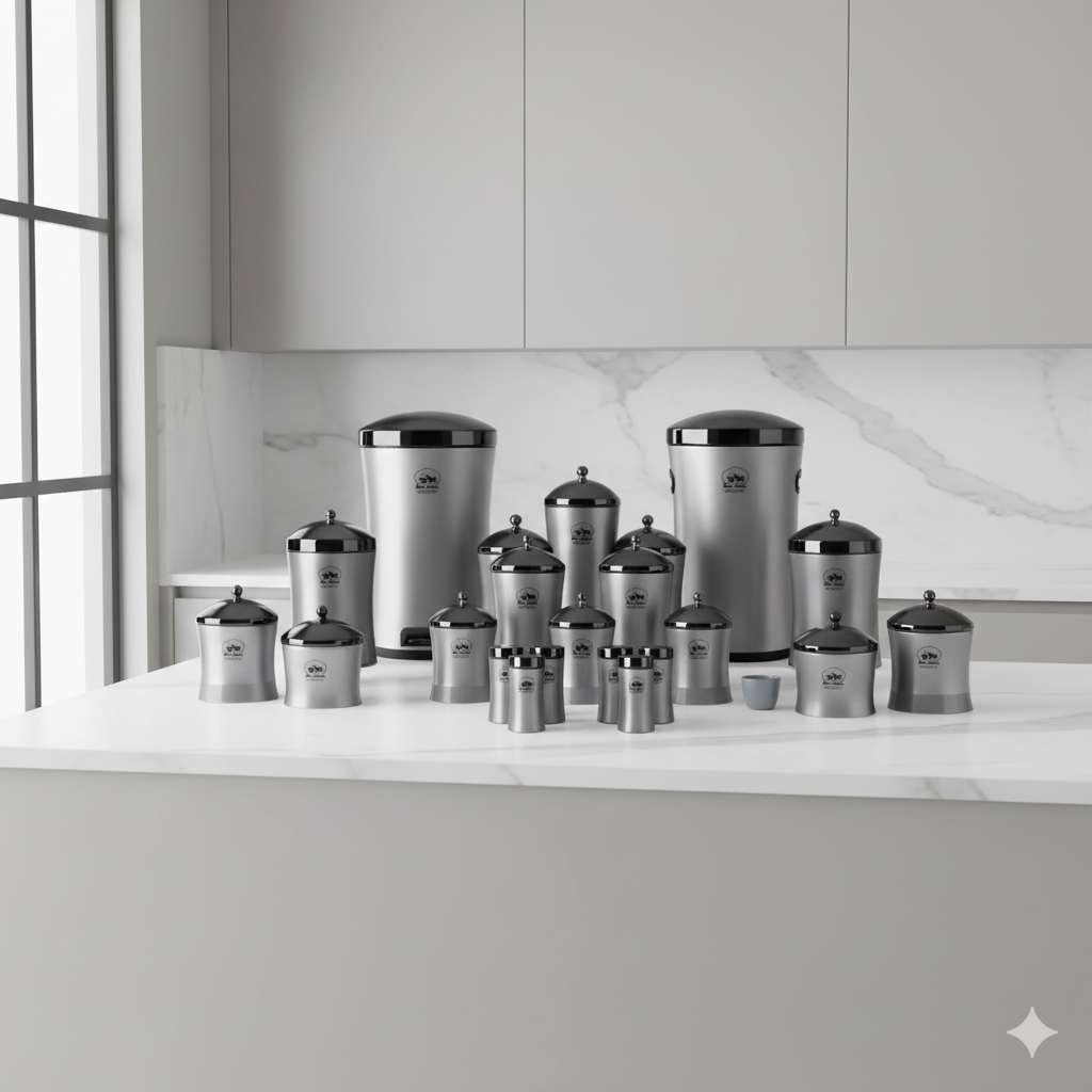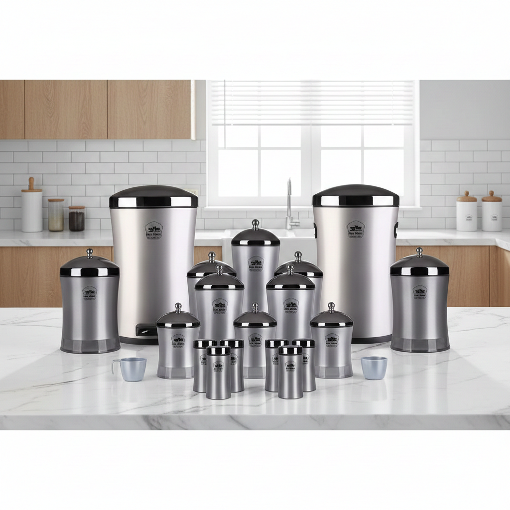 سرویس آشپزخانه 18 پارچه مدل نقره ای درب کروم نیوهوم