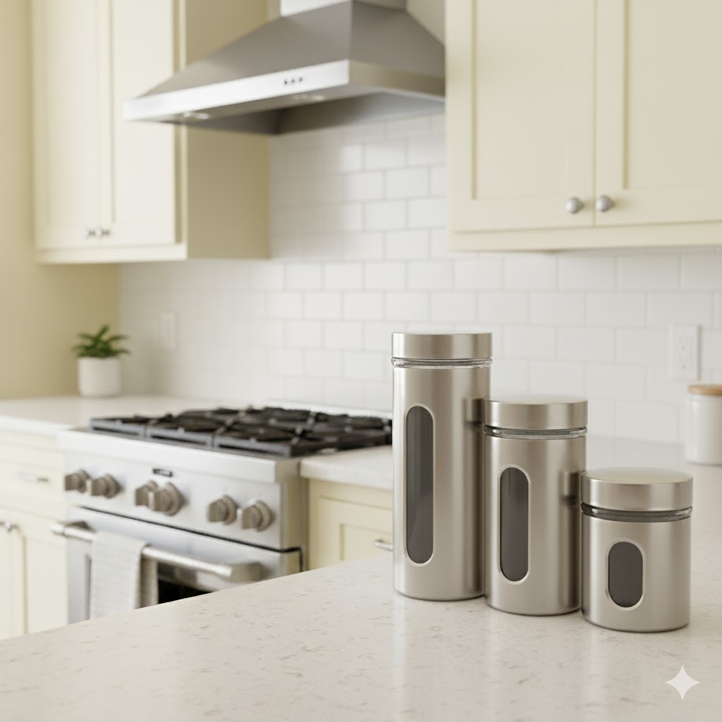 “سرویس بانکه 3 سایز استیل پنجره دار ایوو ” ظروفی هستند مناسب برای نگهداری انواع مواد غذایی از جمله حبوبات، ماکارونی و پاستا، مربا و مارمالاد، برنج و … . جنس بدنه این بانکه ها از شیشه و استیل ضد زنگ است. همه این ظروف دارای درب های پیچی هستند تا بعد از بسته شدن از بیرون نریختن مواد داخل آن اطمینان پیدا کنید. طراحی این سرویس بسیار ساده و شیک بوده و با هر آشپزخانه ای ست میشود.