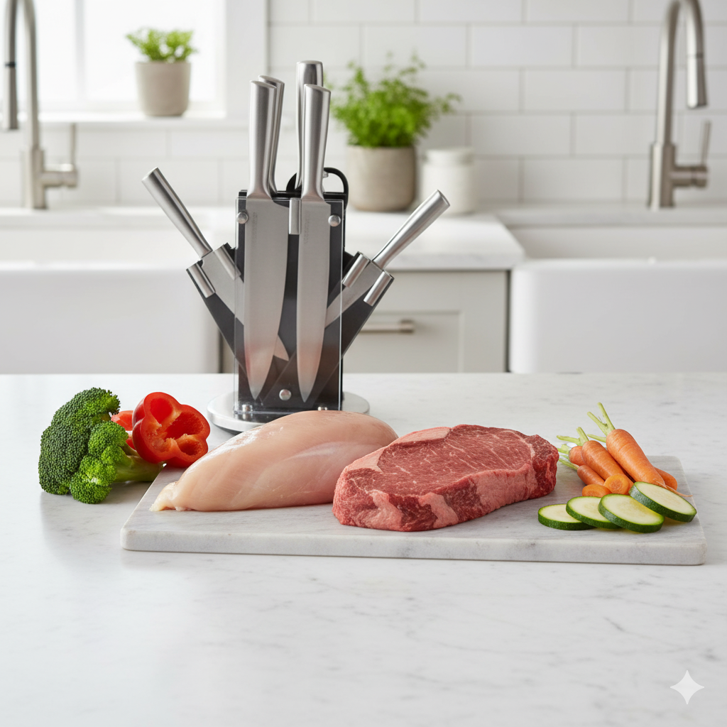 سرویس کارد و ساطور 8 پارچه گردان یونیک کد 5546 (خارجی درجه یک)