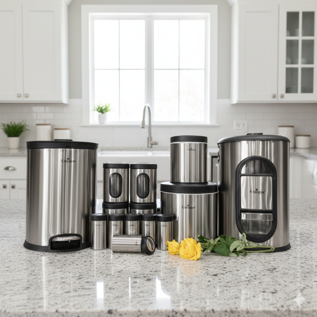 سرویس آشپزخانه 14 پارچه استیل صادراتی یونیک کد 3505