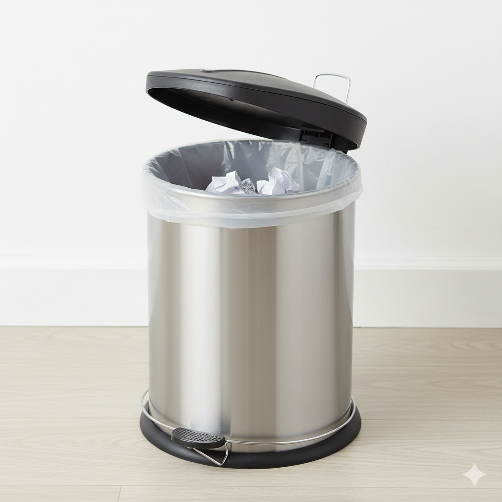 سطل زباله پدالی آکا الکتریک پر طرفدار ترین مدل سطل بازار از جنس استیل بوده و با روکش ضد لک و ضد زنگ و استحکام بالا جلوه بسیار زیبایی دارد. سطل های زباله پدال بین آکا الکتریک دارای درب آرام بند بوده که پس از رها کردن درب سطل زباله به آرامی بسته می شود.