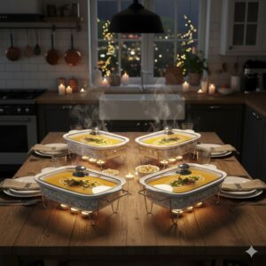 این ظروف مناسب برای سرو انواع سوپ، آش، خوراک هایی از قبیل کباب، جوجه، مرغ و ماهی هستند. به خصوص در مهمانی هایی که نیاز دارید مدتی قبل از حضور مهمانان در سر میز ظرف ها و غذا ها به طور کامل چیده شوند؛ این وقفه میتواند باعث سرد شدن و به اصطلاح از دهن افتادن غذای شما شود. با وجود جای مخصوص شمع در زیر سوفله خوری و قرار دادن یک شمع کوچک در زیر غذا خیالتان از بابت گرم ماندن غذا راحت است. ظروف سوفله خوری بر اساس کاربرد آنها در اشکال و اندازه های گوناگون تولید میشوند.