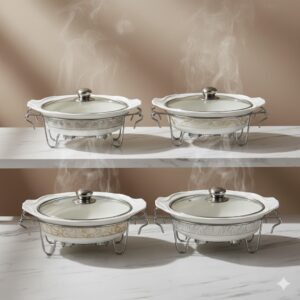 “سوفله خوری متوسط حلقه نقره ای صادراتی یونیک کد 3823” ساخته شده از دو قسمت مجزا است. ظرف داخلی استیل برای قرار دادن غذا و بدنه و درب از جنس استیل ضد زنگ 10-80 درجه یک. مناسب برای سرو انواع غذا به صورت سرد و گرم. زیر این ظرف یک جا شمعی تعبیه شده و گرمای کافی برای گرم نگه داشتن انواع غذا ها را تامین میکند. بدنه براق و دسته های زیبای این محصول ظاهری بسیار لوکس و مناسب جشن ها و تشریفات خاص شما دارد.