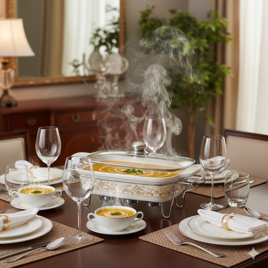 این ظروف مناسب برای سرو انواع سوپ، آش، خوراک هایی از قبیل کباب، جوجه، مرغ و ماهی هستند. به خصوص در مهمانی هایی که نیاز دارید مدتی قبل از حضور مهمانان در سر میز ظرف ها و غذا ها به طور کامل چیده شوند؛ این وقفه میتواند باعث سرد شدن و به اصطلاح از دهن افتادن غذای شما شود. با وجود جای مخصوص شمع در زیر سوفله خوری و قرار دادن یک شمع کوچک در زیر غذا خیالتان از بابت گرم ماندن غذا راحت است. ظروف سوفله خوری بر اساس کاربرد آنها در اشکال و اندازه های گوناگون تولید میشوند.