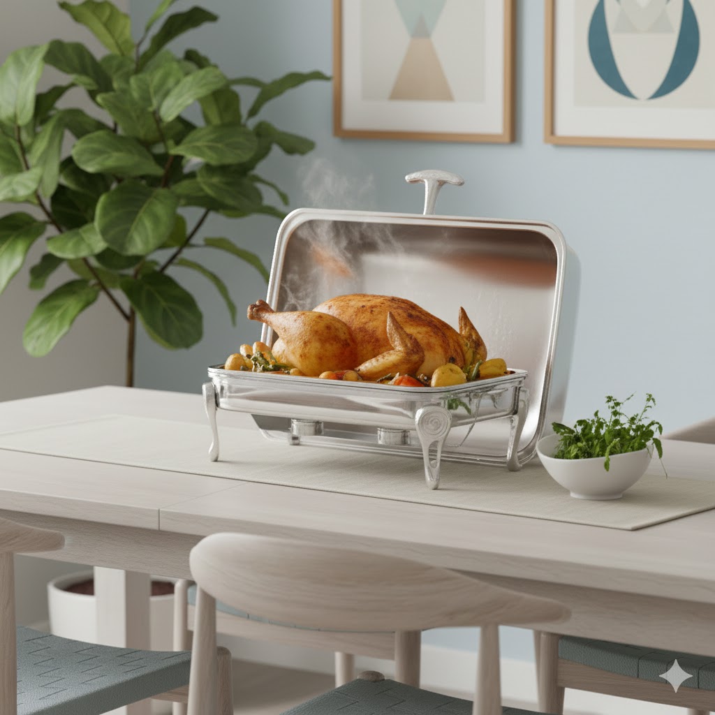 “سوفله خوری 3 لیتری حلقه یونیک کد 3802” ساخته شده از دو قسمت مجزا است. ظرف پیرکس فرانسه داخلی برای قرار دادن غذا و بدنه و درب از جنس استیل ضد زنگ 10-80 درجه یک. مناسب برای سرو انواع غذا به صورت سرد و گرم. زیر این ظرف دو جا شمعی تعبیه شده و گرمای کافی برای گرم نگه داشتن انواع غذا ها را تامین میکند. بدنه براق و دسته های زیبای این محصول ظاهری بسیار لوکس و مناسب جشن ها و تشریفات خاص شما دارد.