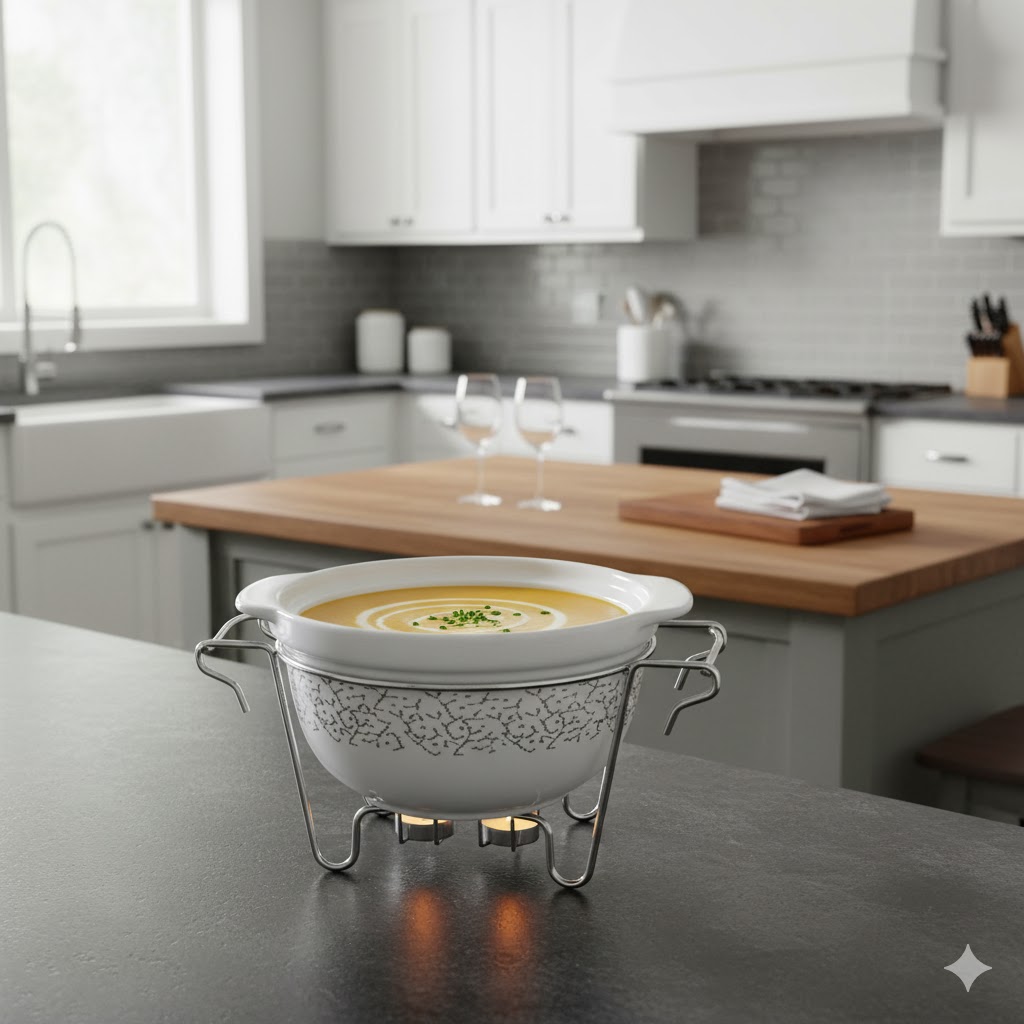“سوفله سوپ خوری یونیک کد 8560” ساخته شده از دو قسمت مجزا است. ظرف پیرکس فرانسه داخلی برای قرار دادن غذا و بدنه و درب از جنس چینی 10-80 درجه یک. مناسب برای سرو انواع غذا به صورت سرد و گرم. زیر این ظرف دو جا شمعی تعبیه شده و گرمای کافی برای گرم نگه داشتن انواع غذا ها را تامین میکند.دسته های زیبای این محصول ظاهری بسیار لوکس و مناسب جشن ها و تشریفات خاص شما دارد.