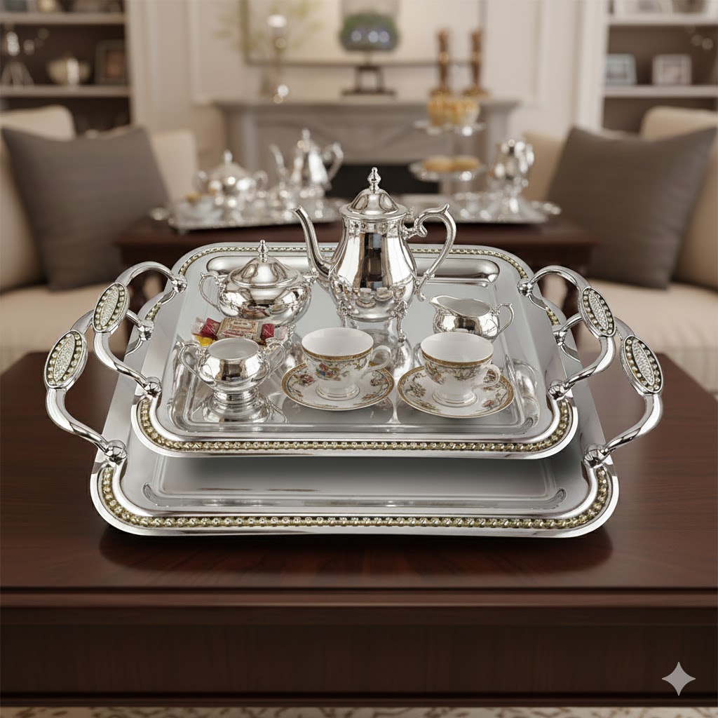 سینی استیل دو تکه نگین دار یونیک کد 3823 (خارجی درجه 1)