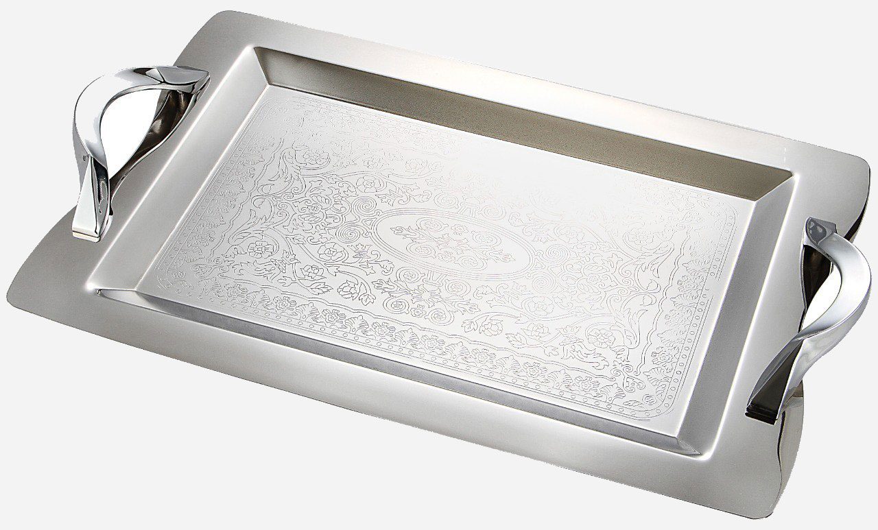 - طراحی کلاسیک و مدرن: ترکیب خطوط ساده و طرحهای حکاکی شده، این سینی را به یک قطعه هنری تبدیل کرده است.