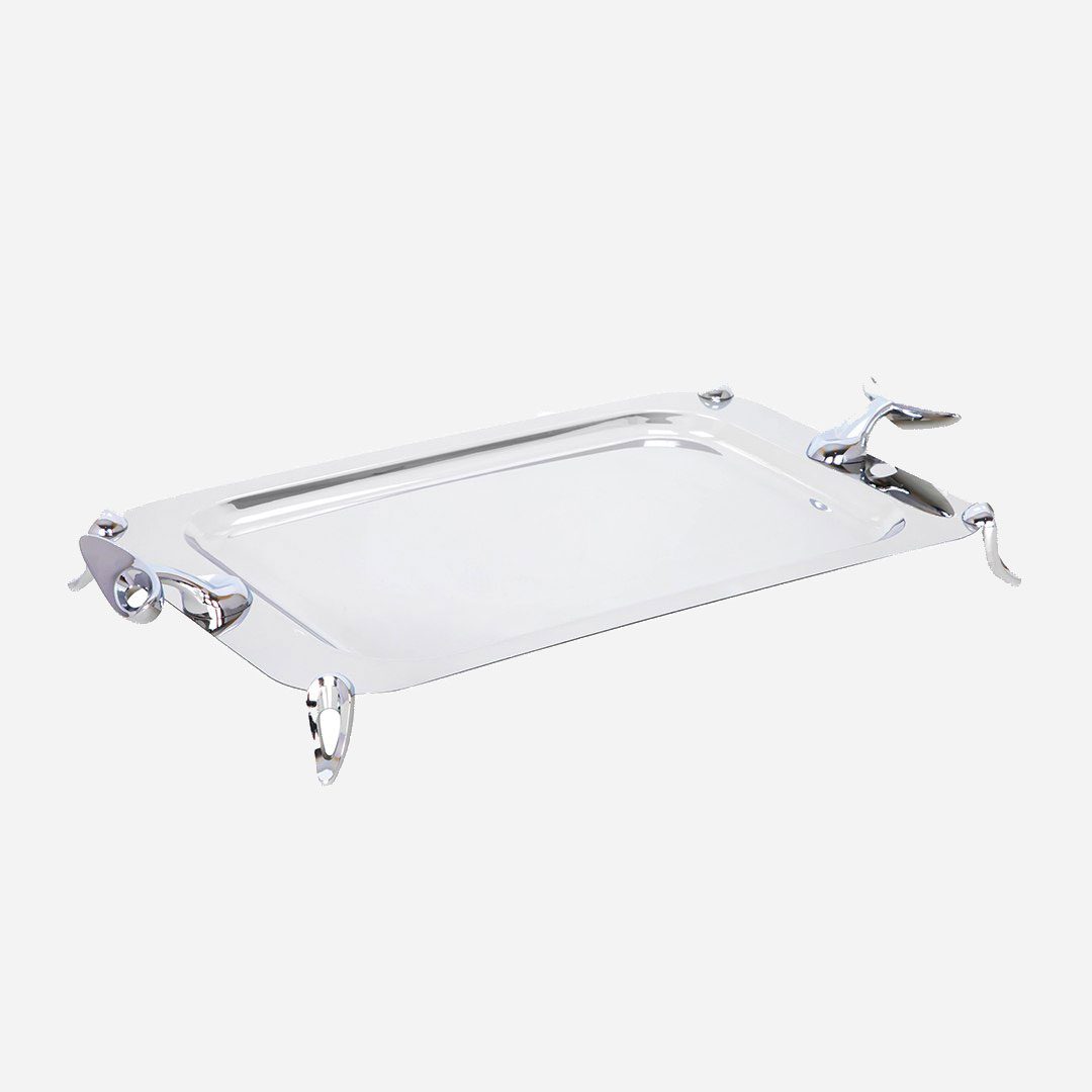 سینی پایه دار مستطیل متوسط نیوهوم مدل فلیم جنس استیل ضد زنگ است استیل بدنه ضخیم و مقاوم در برابر زنگ زدگی است . کیفت عالی NH24-1011