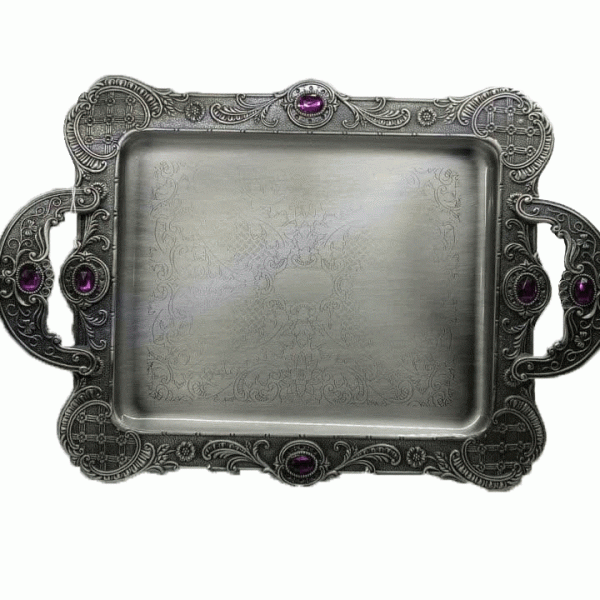 سینی پیوتر متوسط نگین دار بنفش یونیک کد 1447 (خارجی ضد زنگ)