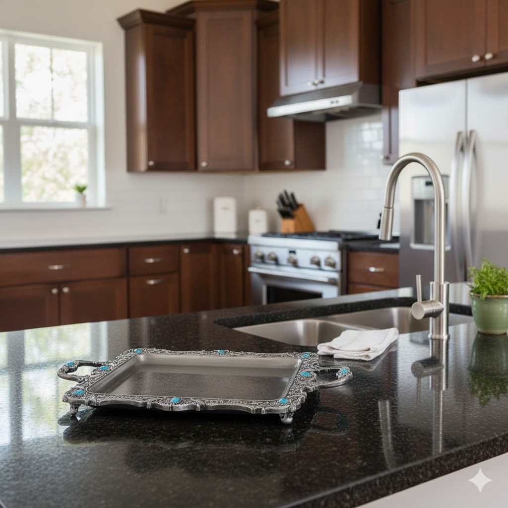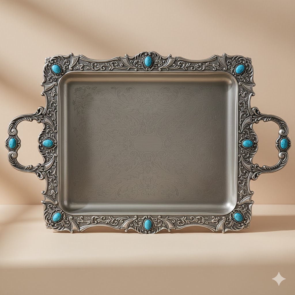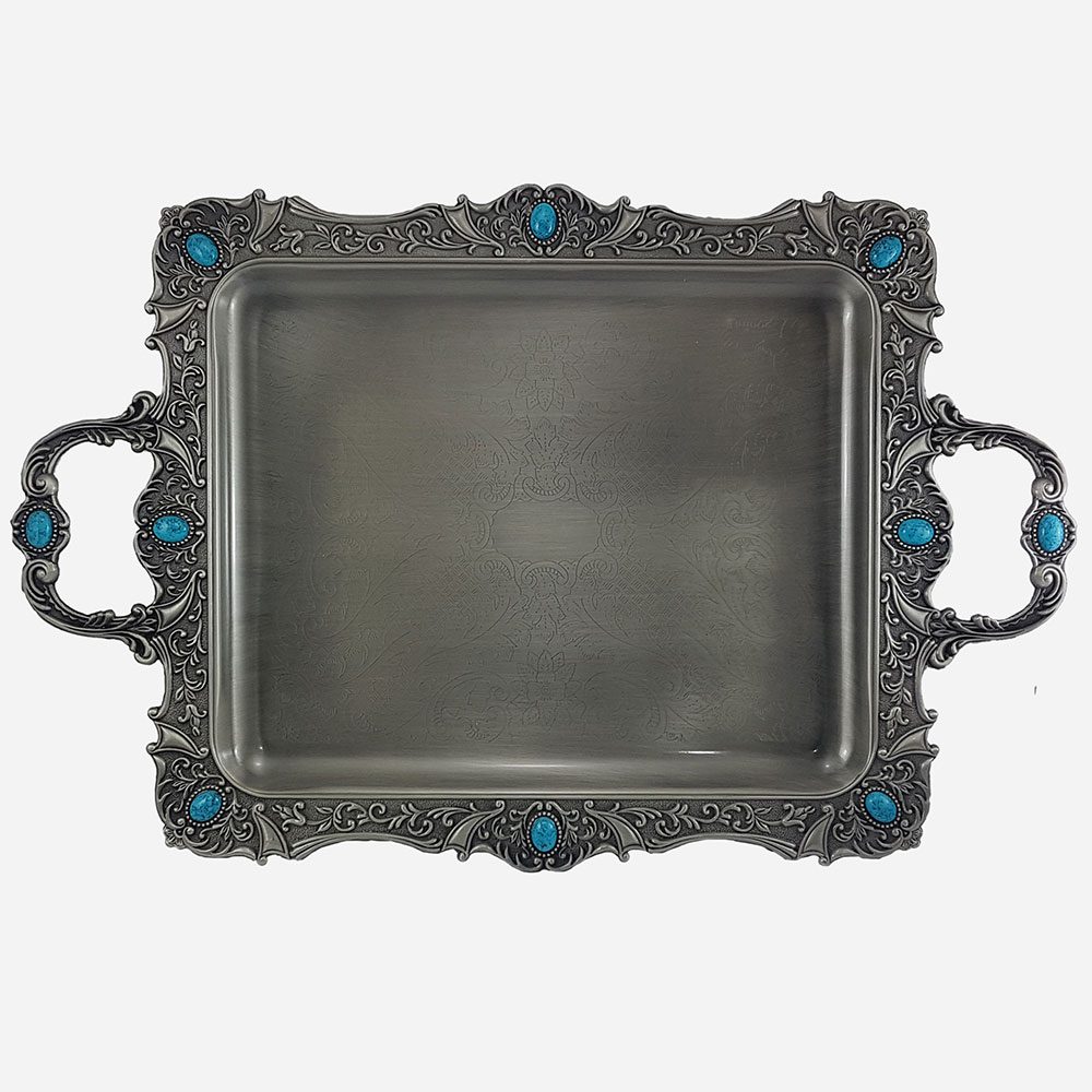 سینی پیوتر متوسط نگین فیروزه یونیک کد 1447 (خارجی ضد زنگ)