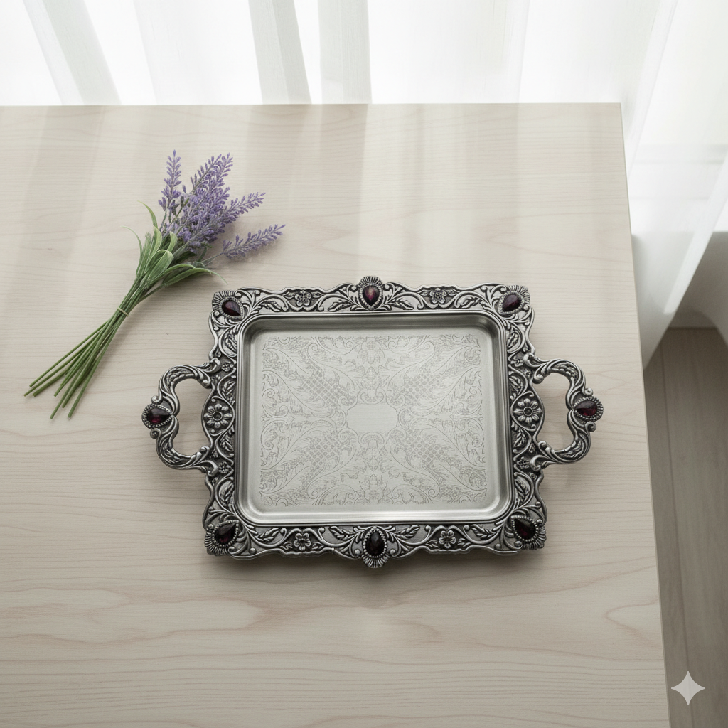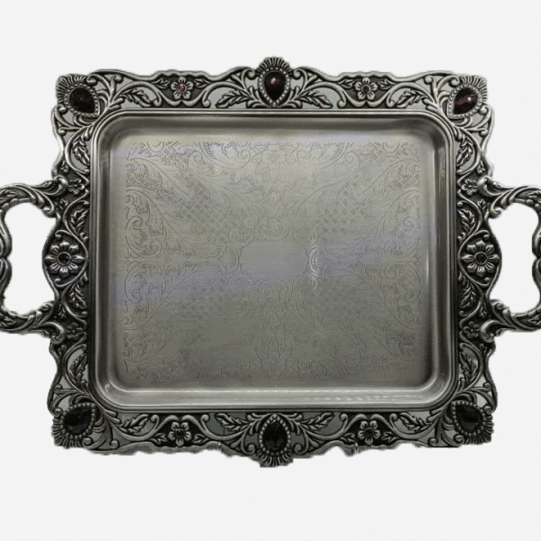 سینی پیوتر نگین دار شرابی متوسط یونیک 1606