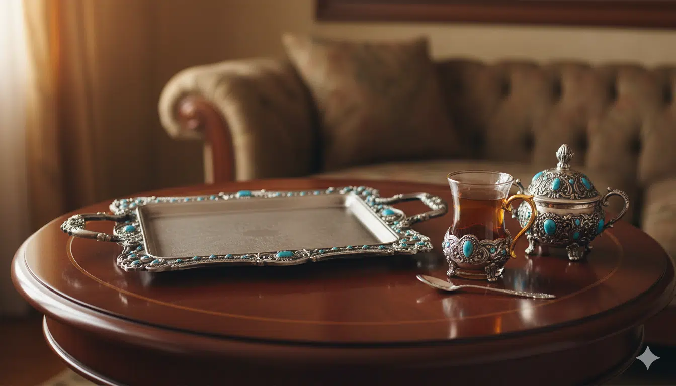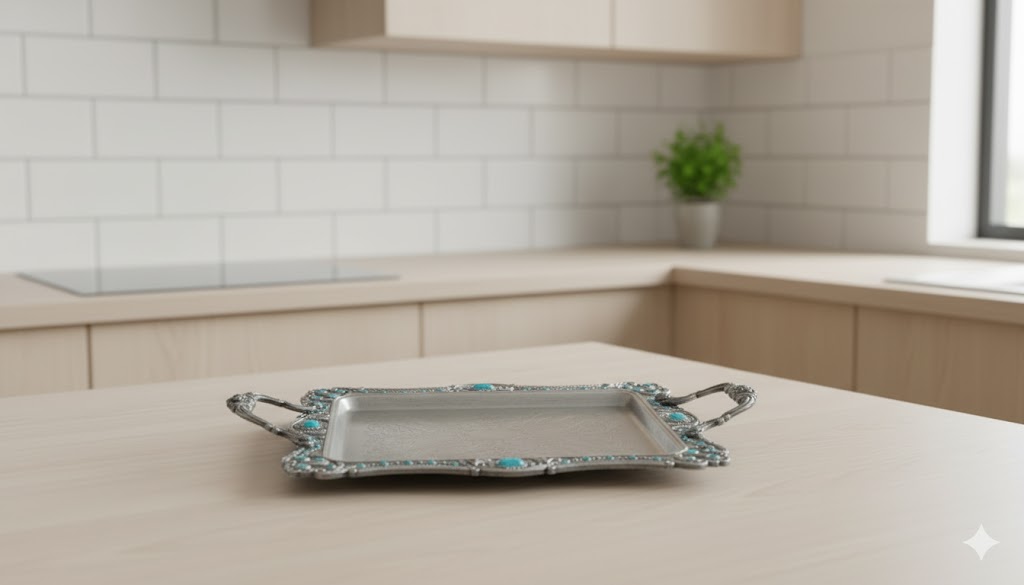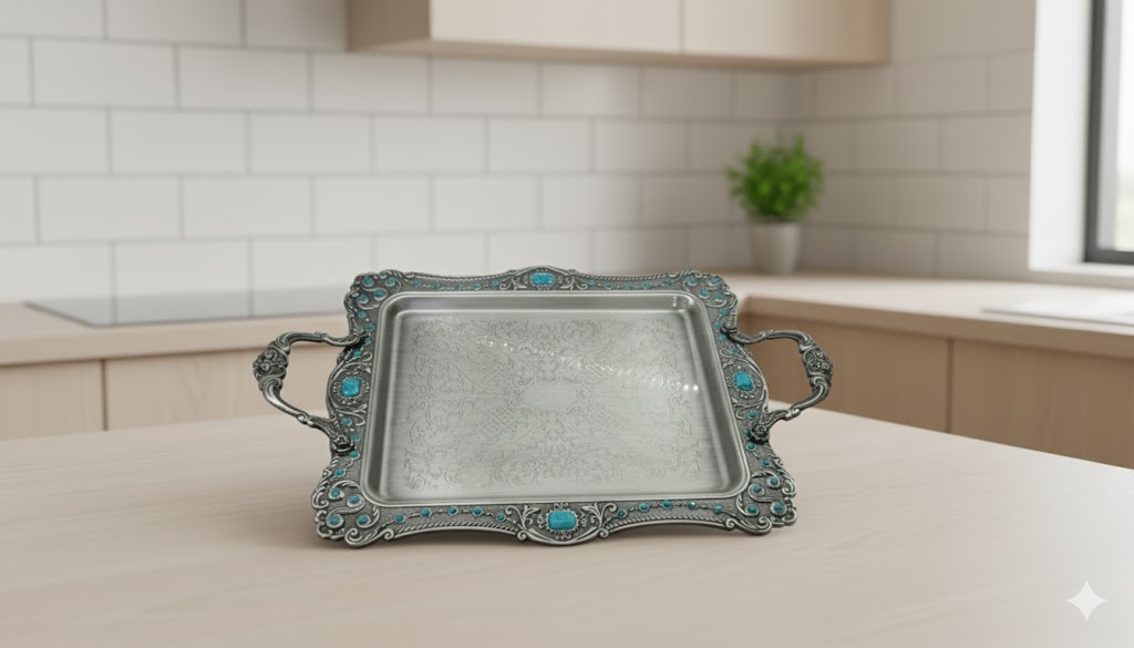 سینی پیوتر کوچک نگین دار فیروزه یونیک کد 1529 (خارجی ضد زنگ)