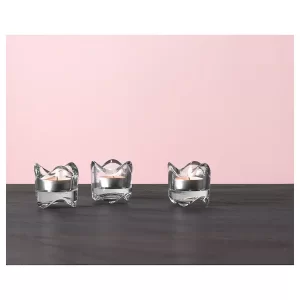 یک ست شمعدان خاص و کلاسیک مناسب دکوراسیون منزل شما. شمعدان 3تایی طلایی ایکیا IKEA-GLITTRIG شامل 3 شمعدان پایه دار به ارتفاع های 11، 16 و 21 سانتی متر است. جنس این شمعدان ها از استیل آنودایز شده طلایی است. این فلز مقاومت بالایی دارد. این شمعدان ها با رنگ مات از جنس اپوکسی پودری پوشده شده اند. در کف هر یک از این شمعدان ها یک لایه پلاستیکی تعبیه شده تا هم چسبندگی مناسبی داشته باشند و هم باعث خراش سطح نشوند.