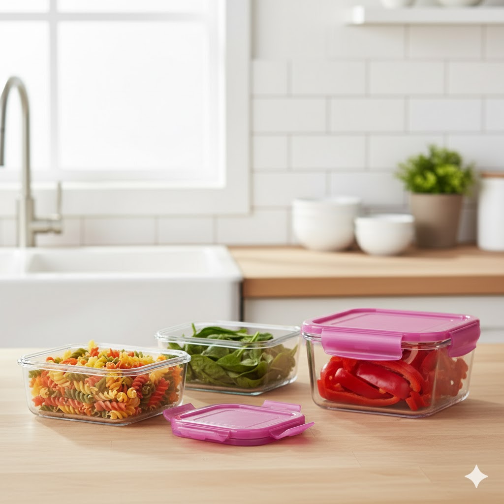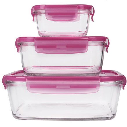 ظرف نگهدارنده مستطیل لومینارک صورتی مجموعه سه عددی