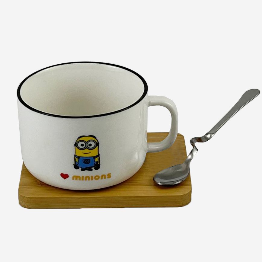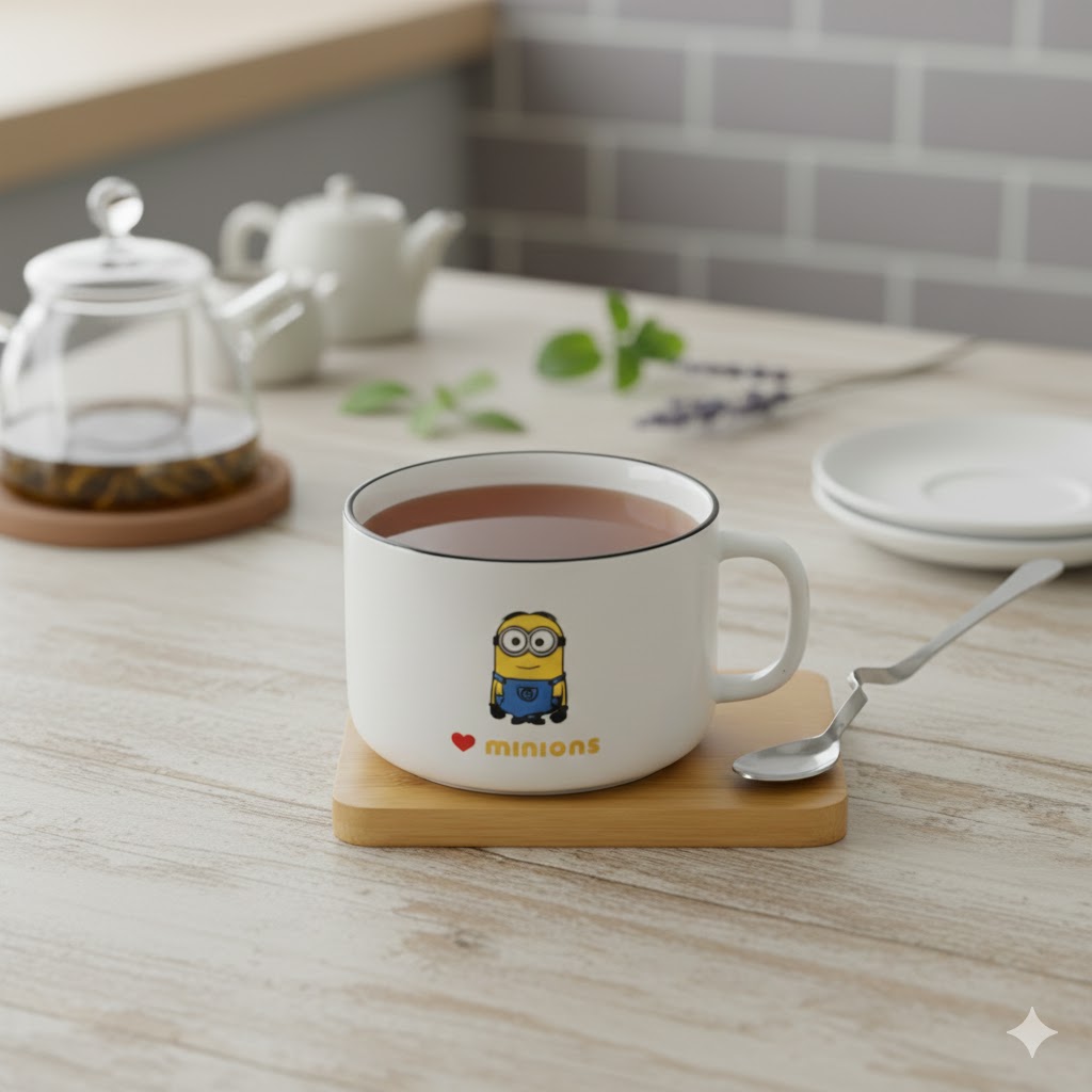 فنجان سرامیکی بزرگ فانتزی و زیرلیوان بامبو