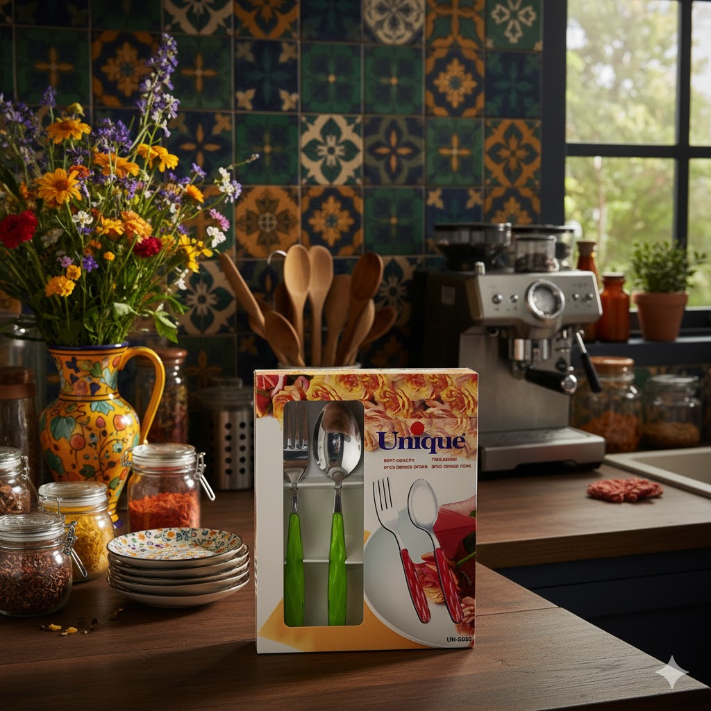 قاشق چنگال 12 پارچه استیل یونیک کد 6384