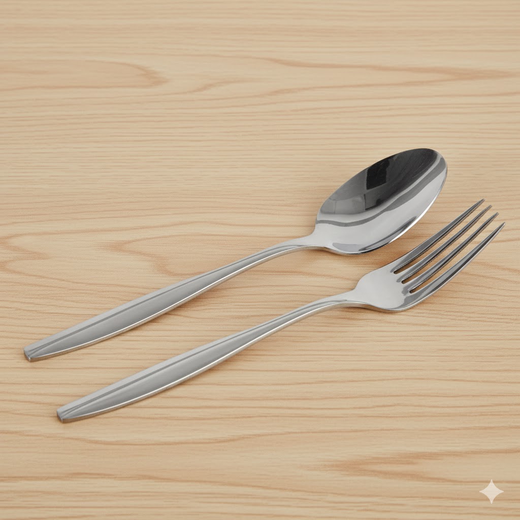 انتخاب درست قاشق و چنگال غذا خوری تکمیل کننده یک سفره زیبا است. تنوع رنگ و طرح بسیار زیاد قاشق و چنگال ها دست شما را برای انتخاب یک ست مناسب برای میز غذای شما باز میگذارد. جدای از ظاهر زیبای قاشق و چنگال از مهمترین ویژگی های لازم که باید به آنها توجه کرد، جنس و استحکام فلز به کار رفته در قاشق و چنگال است. اگر از جنس مرغوبی در تهیه آن استفاده نشده باشد ممکن است هنگام استفاده خم شود یا به دلیل سنگینی بیش از حد دست شما و مهمانان عزیزتان خسته شود. بهترین جنس برای تولید یک قاشق یا چنگال استیل ضد زنگ 10/80 است. این فلز در برابر زنگ زدگی کاملا محفوظ است و تا سالهای سال جزوی از وسایل غذا خوری شما باقی می ماند. علاوه بر جنس، طراحی دسته و سر قاشق و چنگال ها در هنگام استفاده از اهمیت ویژه ای برخوردار است.گود بودن بیش از حد قاشق و یا زاویه اشتباه سر آن با دسته حس ناخوشایندی در هنگام غذا خوردن ایجاد می کند.